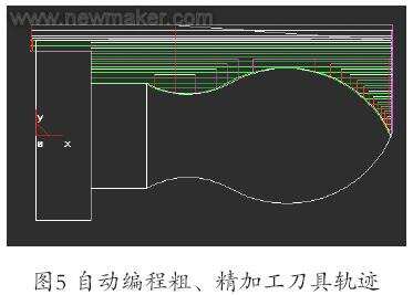 ◎依次拾取待加工面轮廓和毛坯轮廓线,按确定即出现粗加工轨迹,如图5所示;