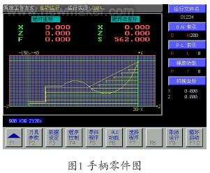 同法,可得到手柄轮廓的精加工G代码程序。粗、精加工程序经机床运行加工发现刀具轨迹合理,轮廓尺寸精确,加工效率高。