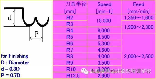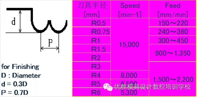 ⑤ 切削刀具的螺距切入量小于刀具直径的1/2: